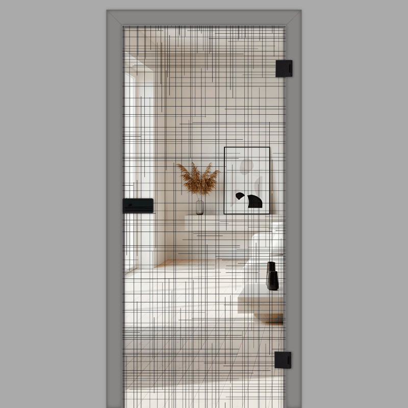 Diese moderne Glastür bringt das Flair urbaner Strukturen direkt in dein Zuhause. Die feinen, asymmetrisch verlaufenden Linien erinnern an Stadtpläne und Architektur – und setzen kraftvolle Statements in modernen Wohnkonzepten.