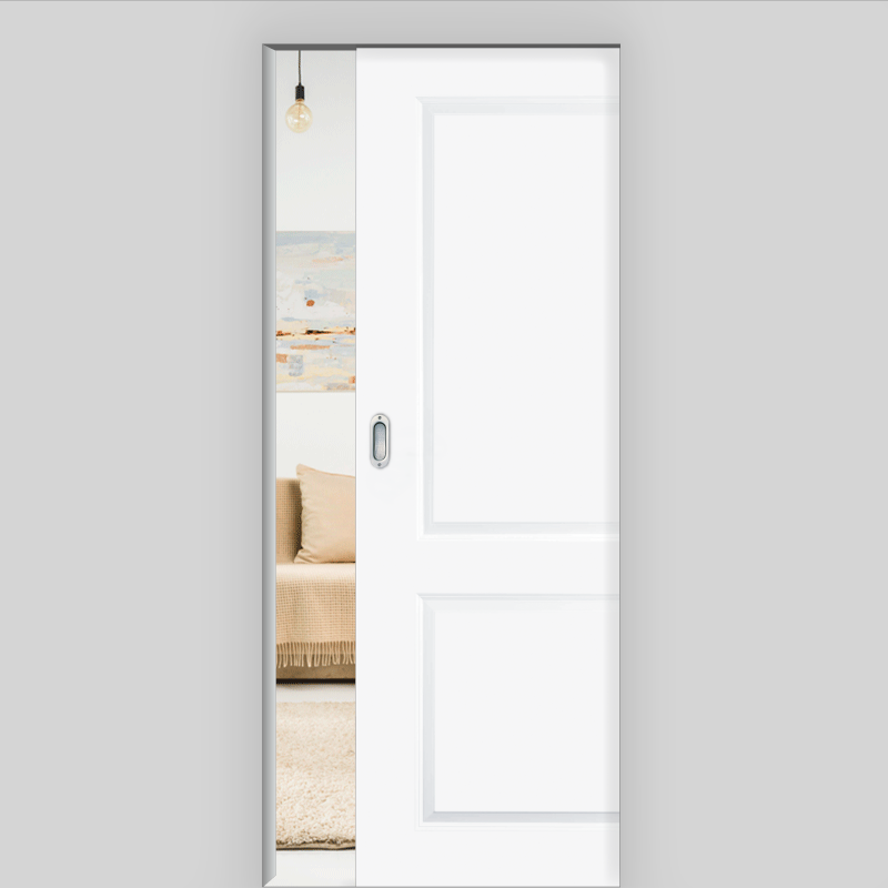 Elegance 02 Schiebetür in der Wand laufend - Landhaustür / Stiltür RAL 9003 Polarweiss