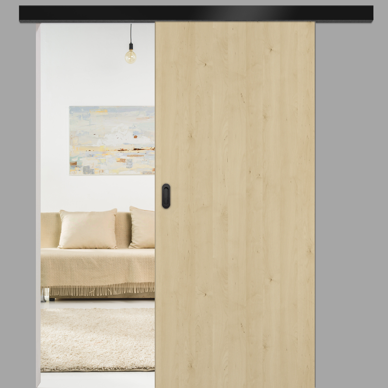 Schiebetür vor der Wand – CPL Natura Ahorn Aufrecht mit Softclose (Komplettset)