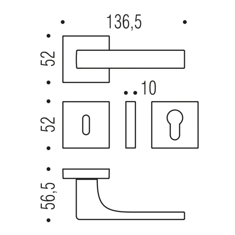 - Länge des Drückers: 136,5 mm