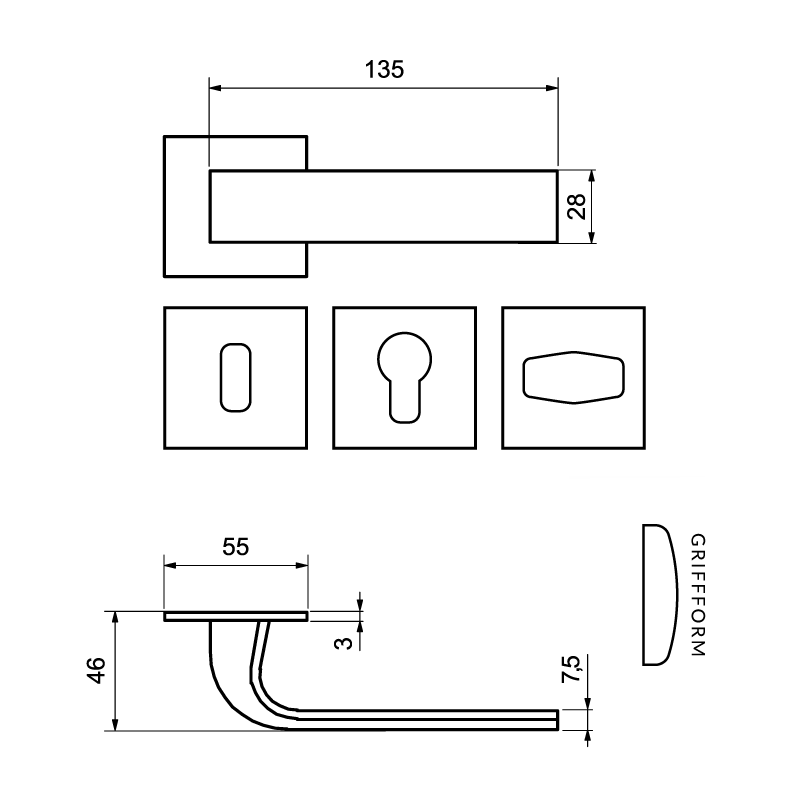 - Drückerlänge: ca. 135 mm