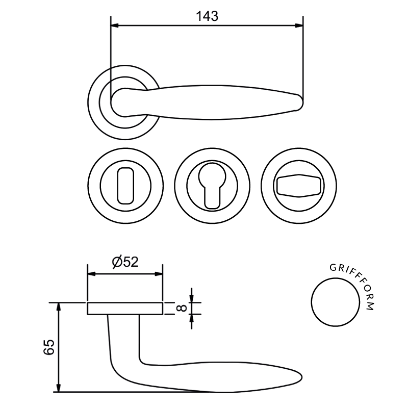 - Drückerlänge: ca. 143 mm (je nach Serie)