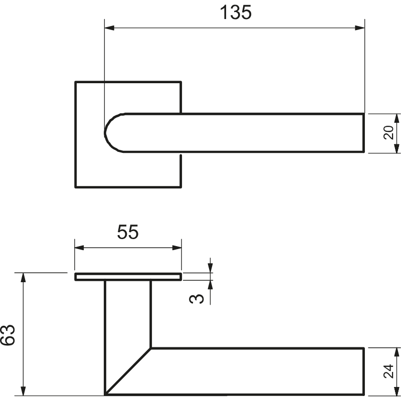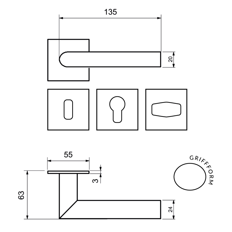 - Drückerform: L-Form mit Hochhaltefeder, fixiert oder drehbar gelagert