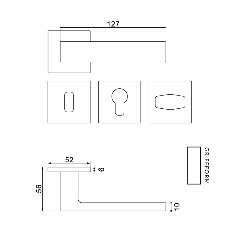 - Rosette: eckig, 52 × 52 mm, Aufbauhöhe ca. 6 mm