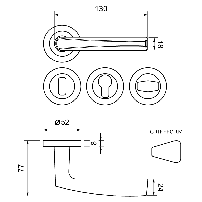 - Drückerlänge: ca. 130 mm
