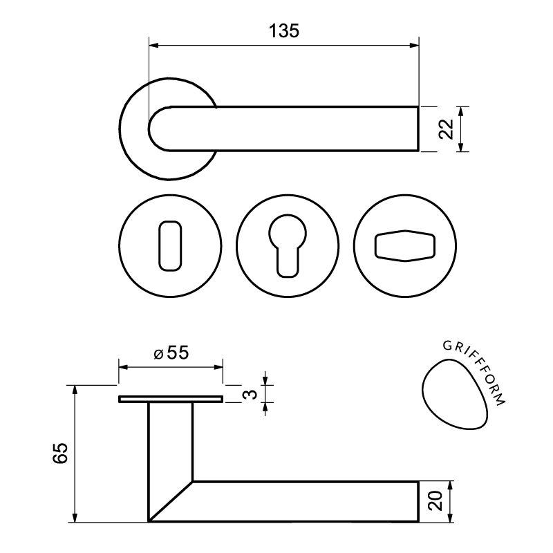 - Rosette: Ø 55 mm, ultraflach (nur 3 mm Aufbauhöhe)