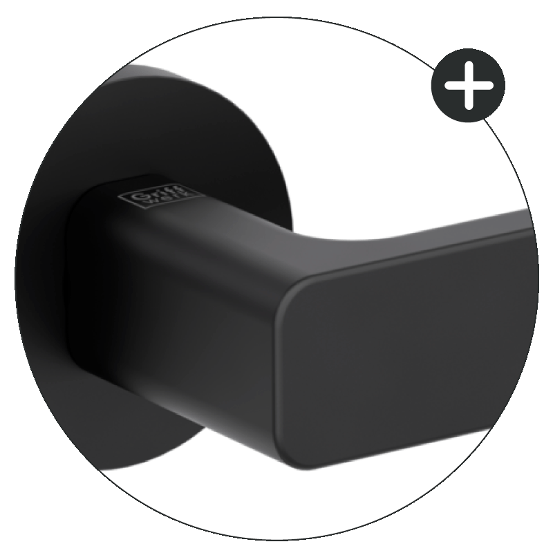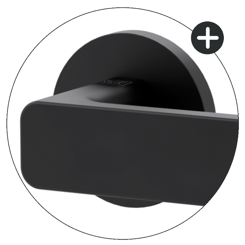 - Rosetten: rund Ø 51 mm, Stärke 6 mm, verdeckte Befestigung (Fast2Fix)