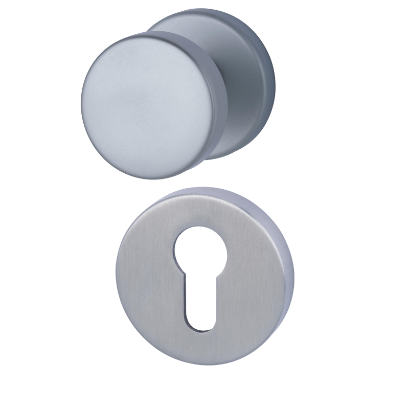 Die Wohnungseingangsgarnitur Ronny II-R von Südmetall überzeugt in der edlen Oberfläche Alu F1 Pearl-satiniert, die durch ihre feine Perl-Struktur und den seidenmatten Glanz eine hochwertige Optik bietet. Kreisrunde Rosetten, ein kugelförmiger Knopf und ein klarer, zylindrischer Türgriff prägen das moderne Design. Das Top Speed-System ermöglicht eine besonders schnelle Montage – dank werkzeugloser Befestigung sparst du wertvolle Zeit. Die integrierte Hochhaltefeder sorgt für eine dauerhaft stabile Drückerposition, während die robuste Metall-Unterkonstruktion auch bei hoher Beanspruchung langlebig bleibt. Mit geprüfter EN 1906, Gebrauchskategorie 3 und einer 12-jährigen Herstellergarantie ist dieser Beschlag bestens für Wohnungseingangstüren geeignet.