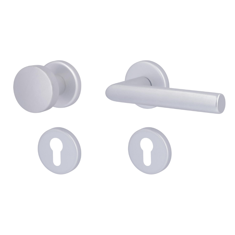 Wohnungseingangsgarnitur Ronny II-R – Alu F1 Pearl-satiniert mit Vario Star Basic