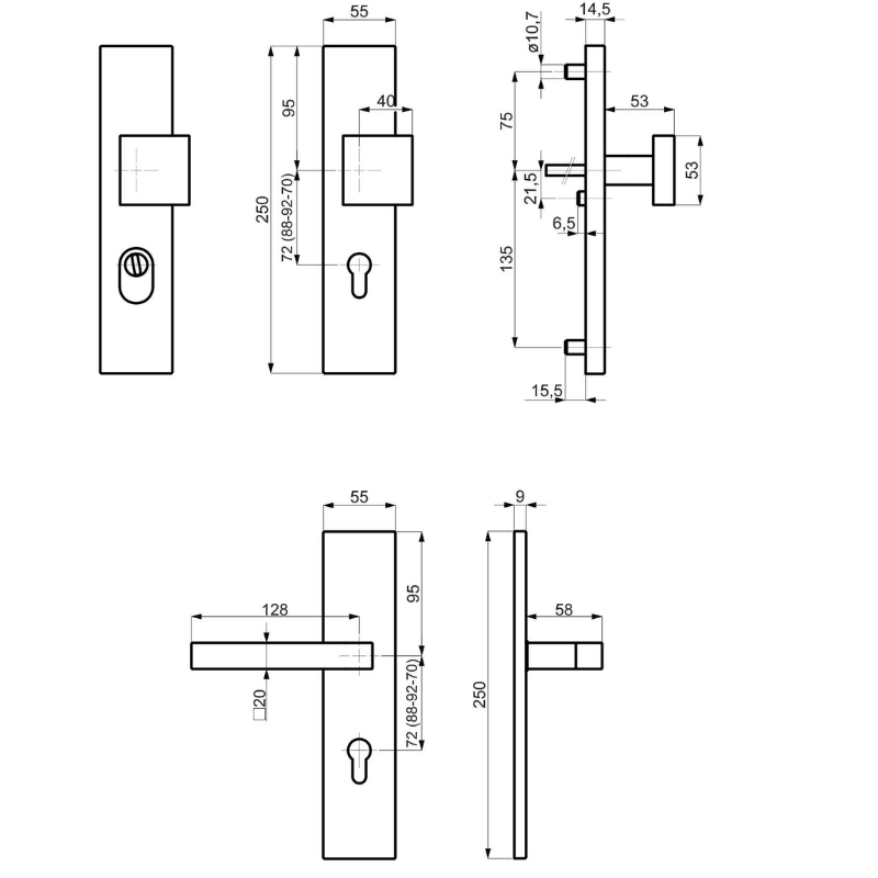 - Griffplatte/Drücker-Komplettgarnitur mit Zylinderabdeckung