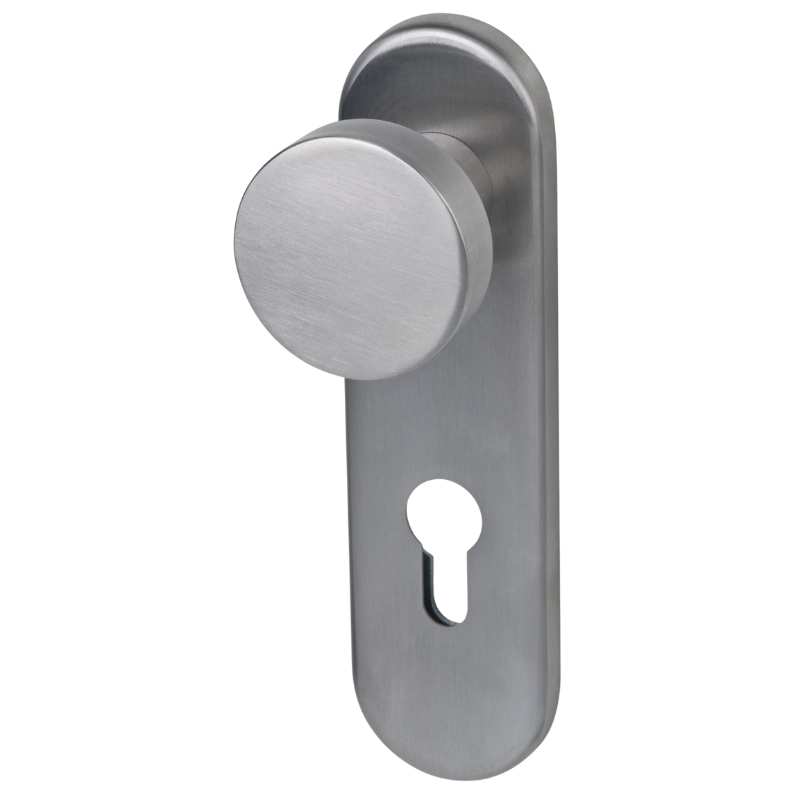 Sicura Ronny-KS - Edelstahl satiniert - Knopf/Drücker - Schutzbeschlag für Wohnungstüren