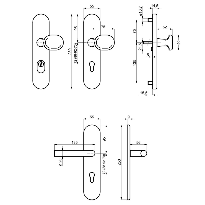 - Ausführung: Drücker/Drücker, wahlweise mit oder ohne Zylinderabdeckung (ZA)